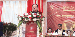 मुख्य अतिथि श्री जे.पी. नड्डा ने कहा कि ‘मानव रचना’ नाम अपने आप में मानवीय मूल्यों के निर्माण का संदेश देता है। उन्होंने कहा,“आज देश अमृत काल के दूसरे चरण में है और आने वाले 25 वर्ष भारत की दिशा तय करेंगे। 2047 तक विकसित भारत के निर्माण में युवाओं की निर्णायक भूमिका होगी।” उन्होंने स्वास्थ्य क्षेत्र की उपलब्धियों का उल्लेख करते हुए बताया कि पिछले 11 वर्षों में संस्थागत प्रसव 78 प्रतिशत से बढ़कर 89 प्रतिशत हुए हैं, जबकि मातृ एवं शिशु मृत्यु दर में तेज गिरावट दर्ज की गई है। आयुष्मान भारत जैसी योजनाओं से स्वास्थ्य सेवाएं अधिक सुलभ हुई हैं। उन्होंने एम्स, आईआईटी और आईआईएम जैसे संस्थानों के विस्तार को देश की प्रगति का प्रतीक बताया।