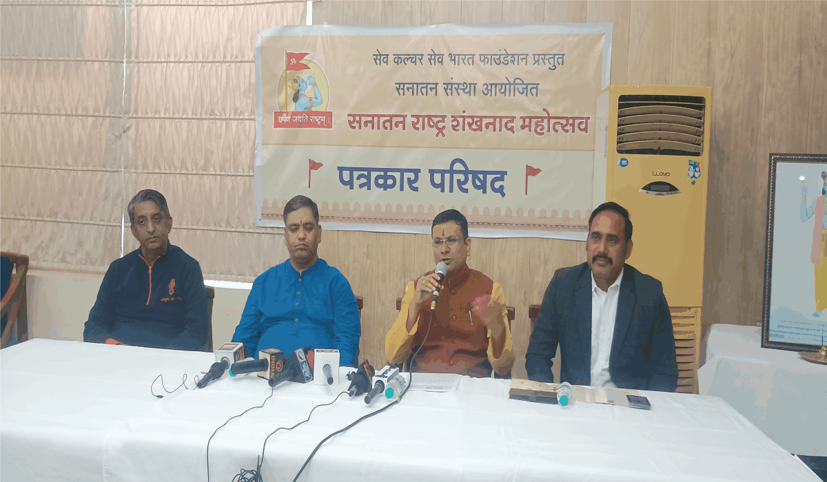 इसी संकल्प के साथ ‘सेव कल्चर सेव भारत फाउंडेशन’ प्रस्तुत तथा ‘सनातन संस्था’ के आयोजन में ‘सनातन राष्ट्र शंखनाद महोत्सव’ का आयोजन 13–14 दिसंबर 2025 को नई दिल्ली (इंद्रप्रस्थ) स्थित भारत मंडपम में होने जा रहा है। यह जानकारी संस्था के राष्ट्रीय प्रवक्ता श्री चेतन राजहंस ने फरीदाबाद के अरावली गोल्फ क्लब में आयोजित पत्रकार परिषद में दी। सम्मेलन में I.I.W.E.R बालाजी ग्रुप ऑफ कॉलेज के चेयरमैन श्री जगदीश चौधरी, ‘युथ फॉर पनुन कश्मीर’ के जनरल सेक्रेटरी श्री दिगंबर रैना तथा हिंदु जनजागृति समिति के राष्ट्रीय प्रवक्ता रमेश शिंदे उपस्थित रहे।